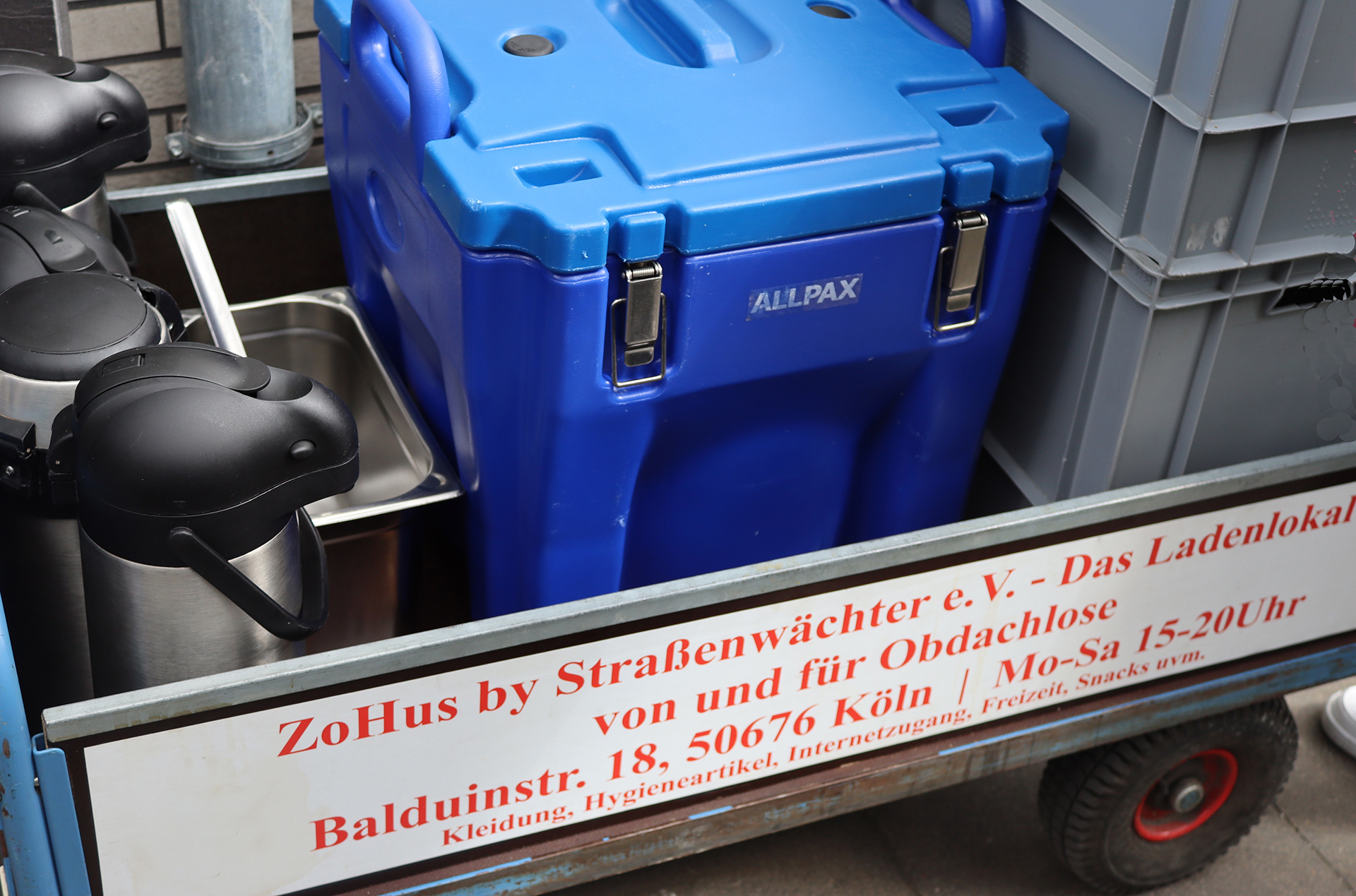 Bu: Per Bollerwagen versorgt das ehrenamtliche Team von Straßenwächter e.V. obdachlose Menschen mit Essen und Getränken (Foto: ownSoft GmbH)